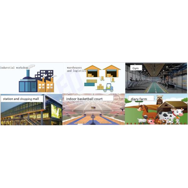 DAISEN HVLS fans are widely uesd in:4-20m high processing plants, arehousing and logistics, indoor sports places, gym, stations, shopping malls, dairy farms and other places.
